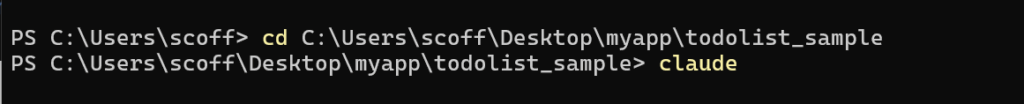 以下コマンドを入力してエンターを押し、ClaudeCodeを起動します。
